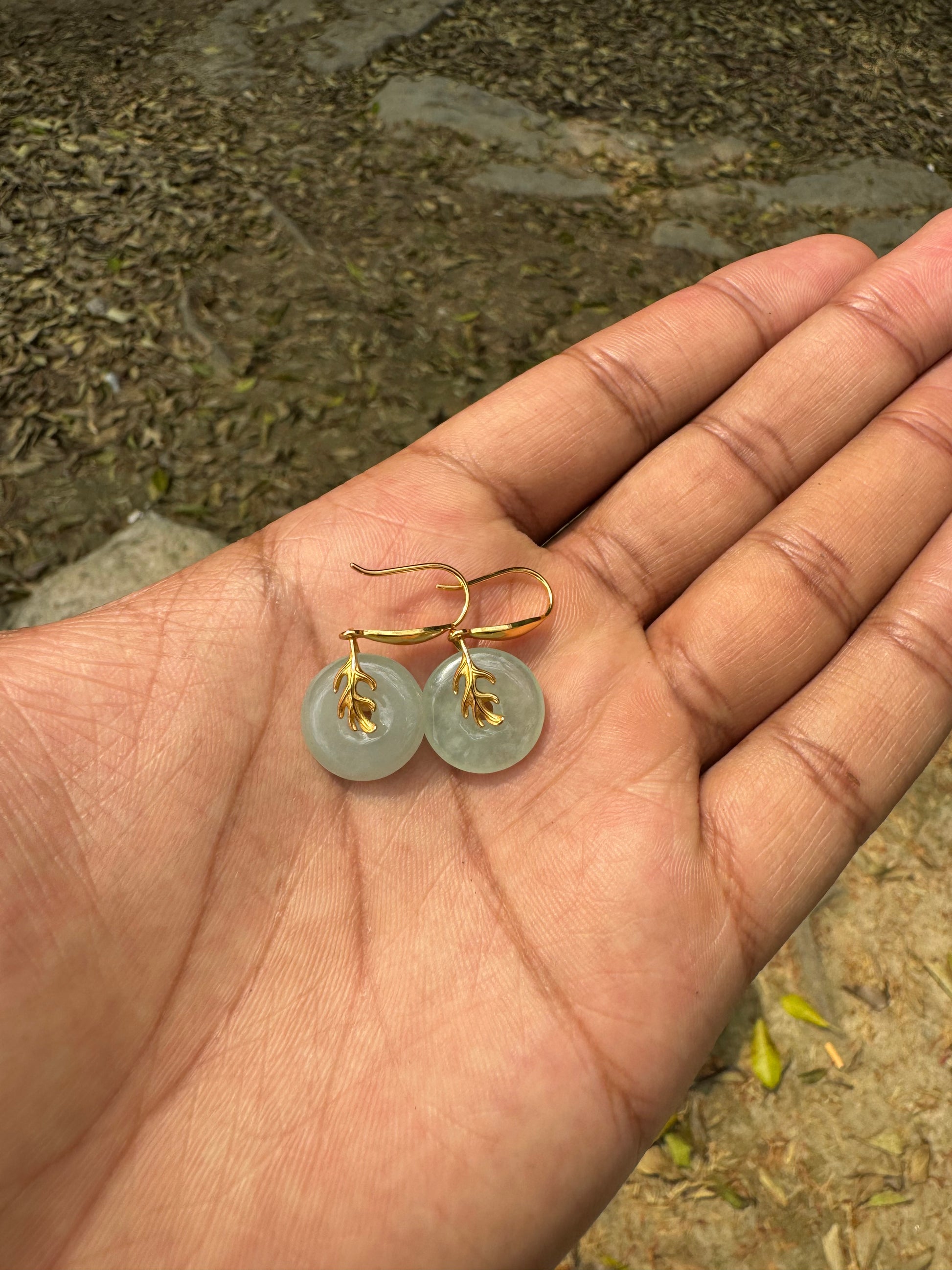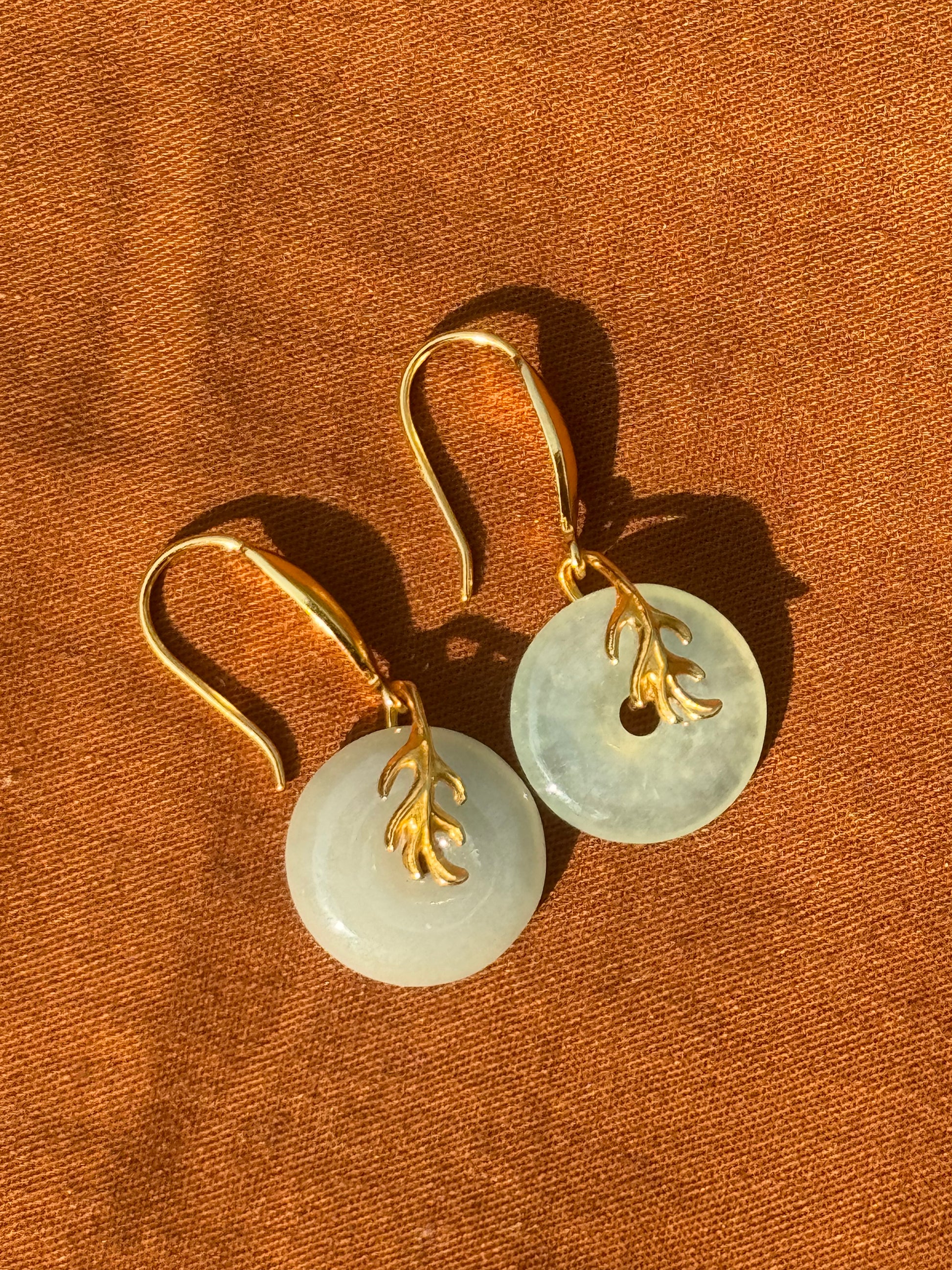 These earrings are inspired by nature, pairing a gold plated leaf with classic green jade. They gently dangle and are filled with 100% sterling silver!