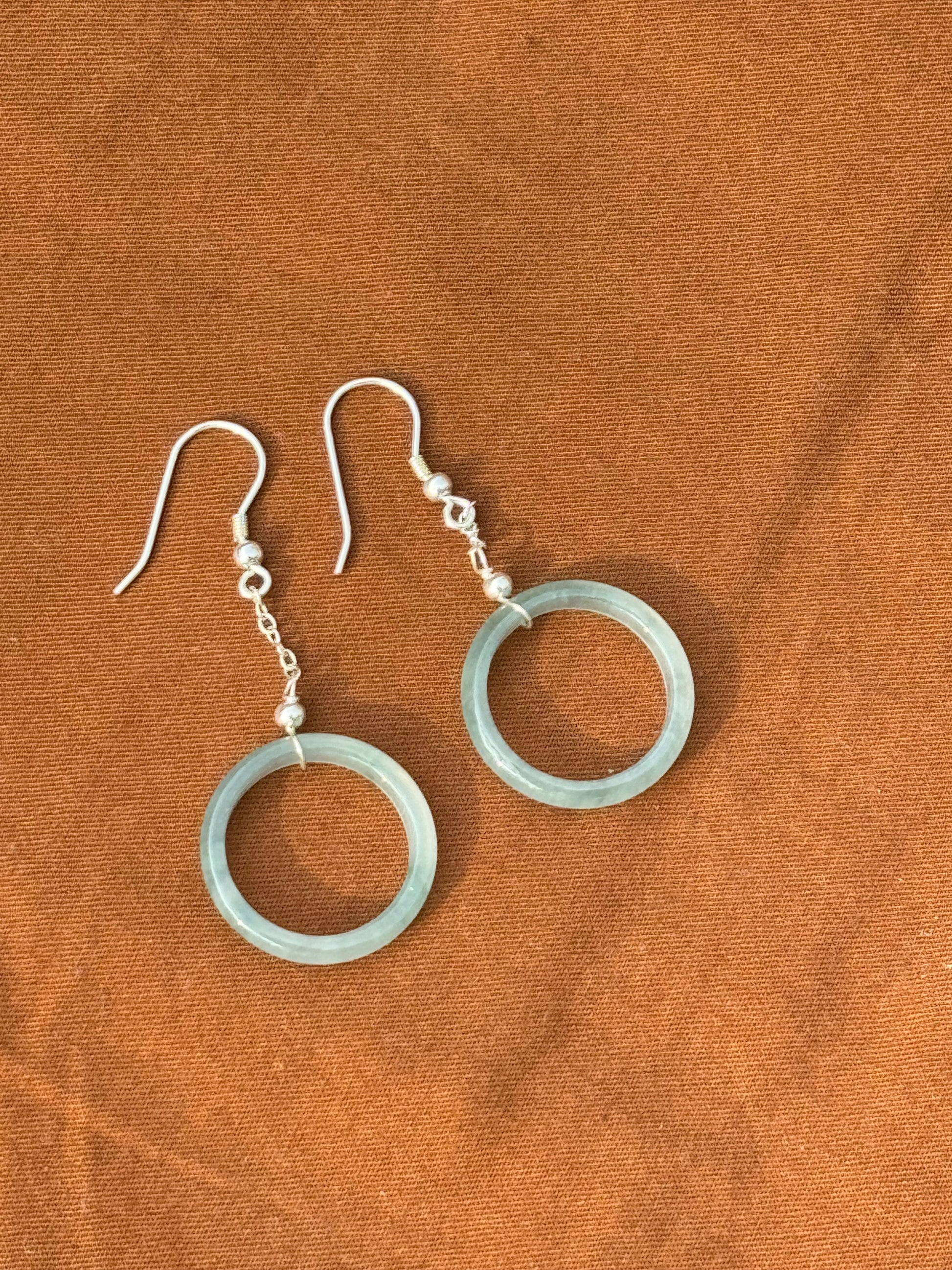 Thin, dainty Guatemalan jadeite hoop earrings in icy blue!