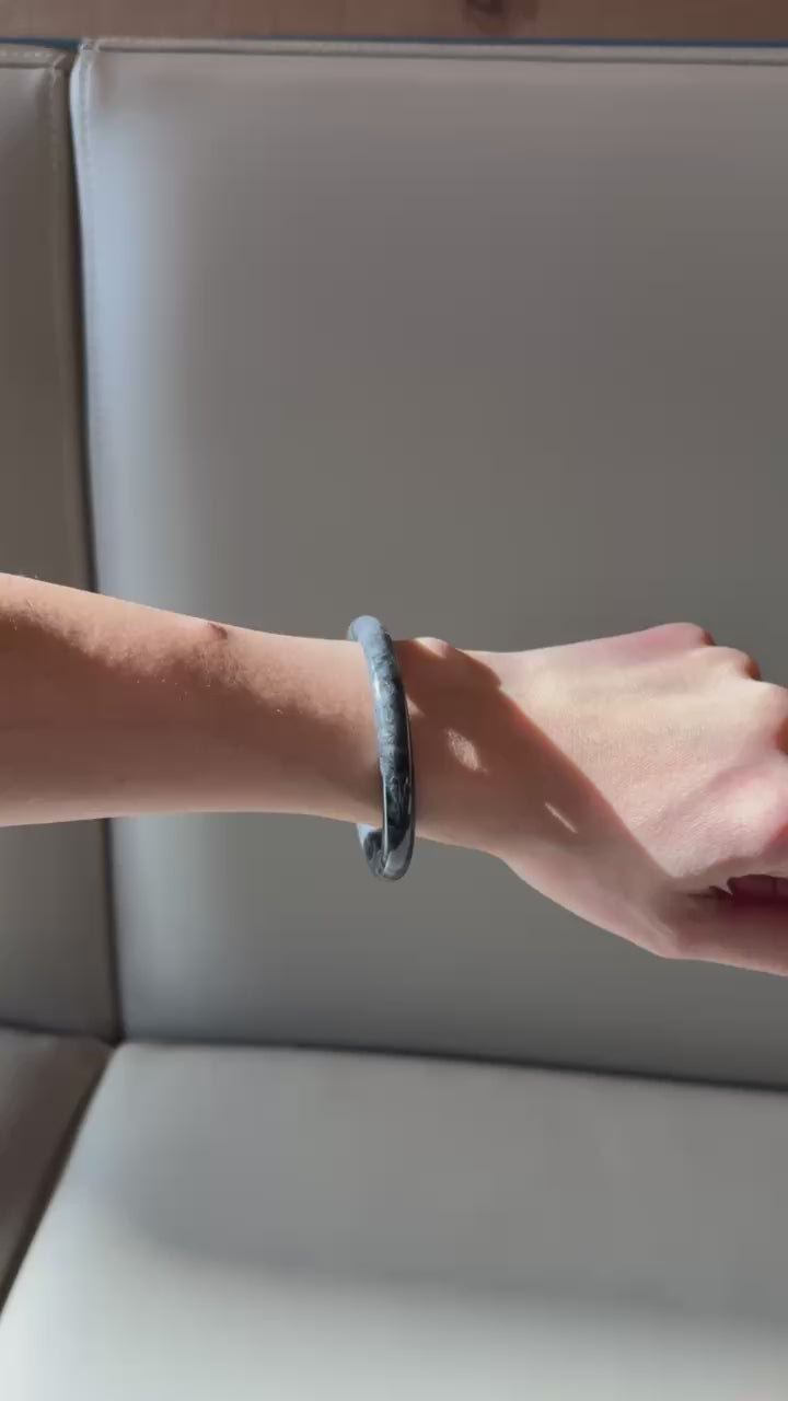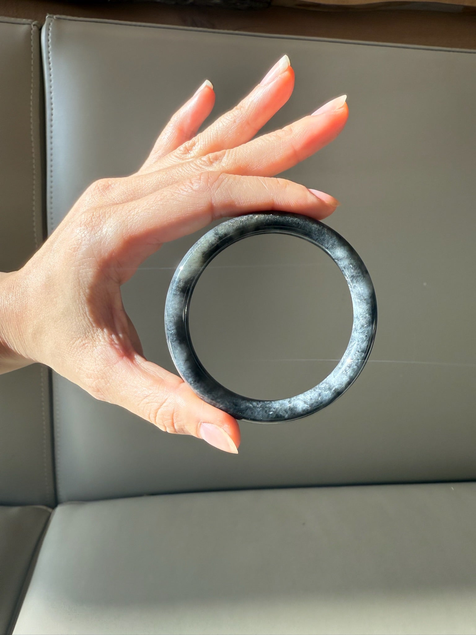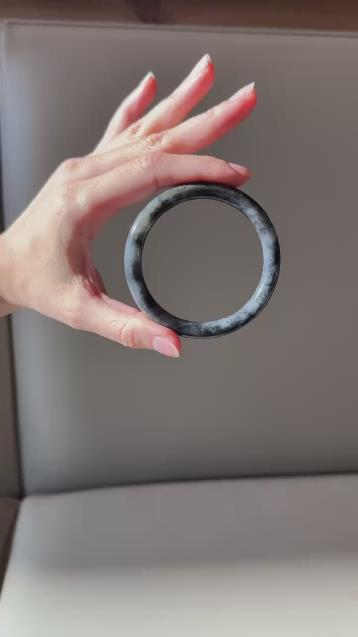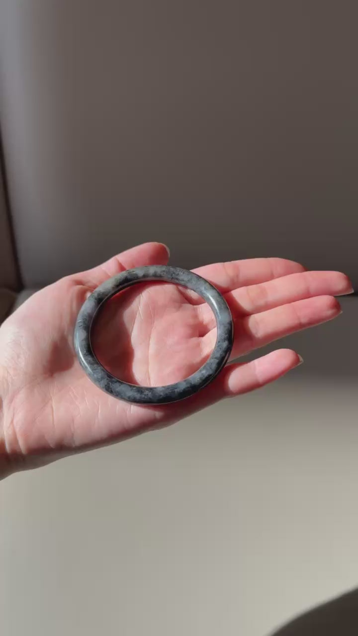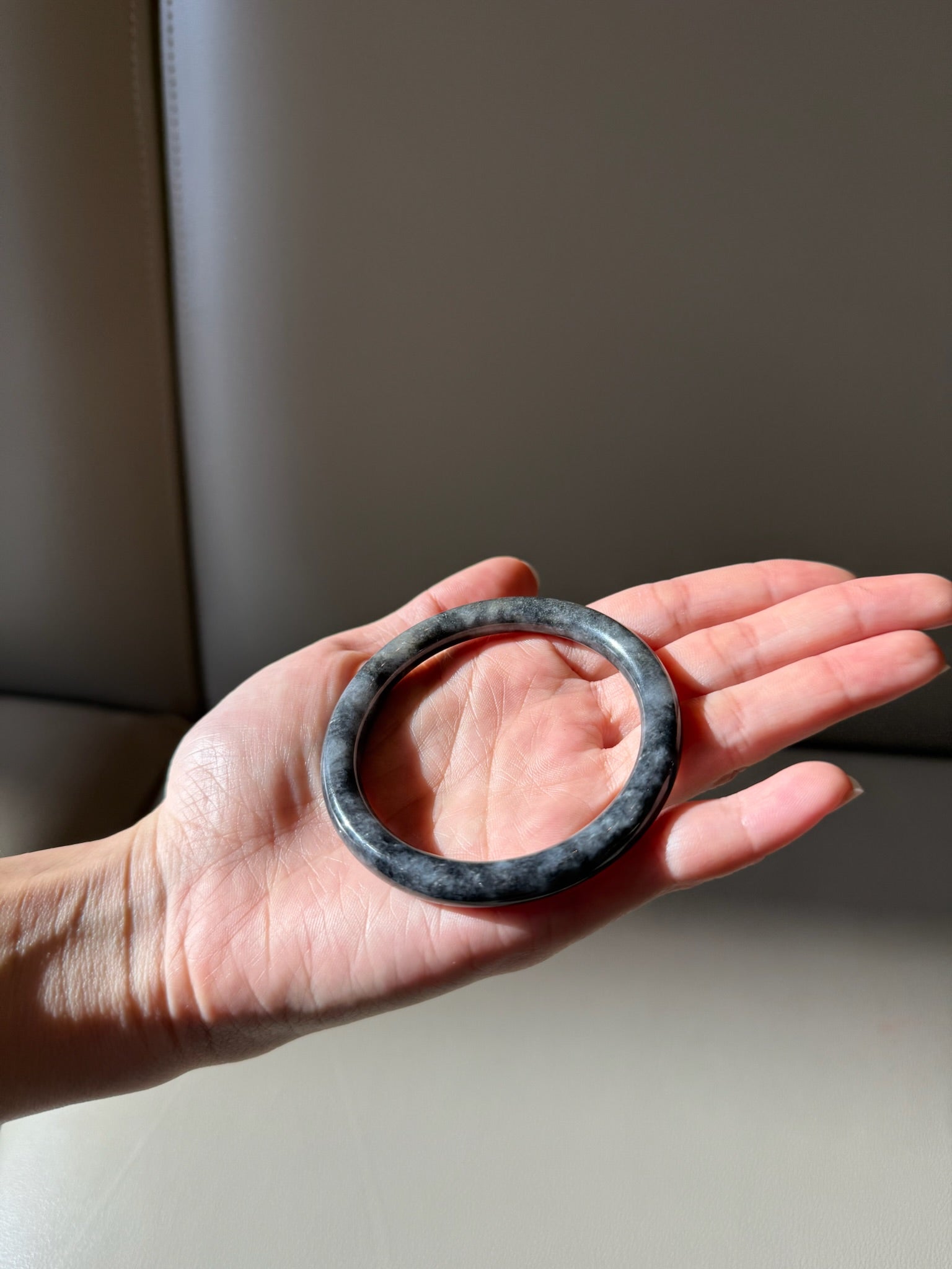 60mm Burmese Marbled Black and Gray Jadeite Bangle