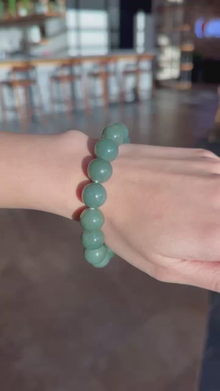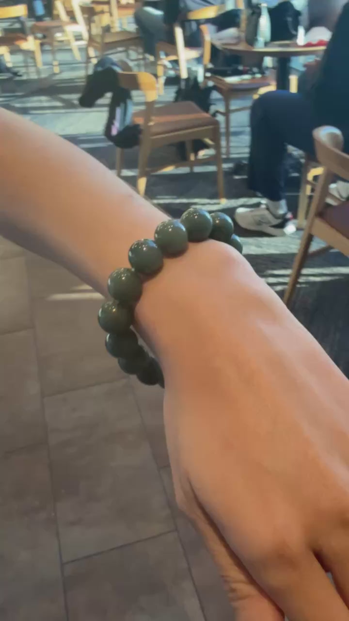 Natural Jadeite Forest Green 13mm Bead Bracelet